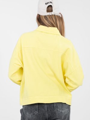 Κλασσικό γυναικείο τζιν μπουφάν σε casual στυλ, ιδανικό για καθημερινές εμφανίσεις. Το μοντέλο κλείνει με κουμπιά, διαθέτει κλασσικό γιακά και μακριά μανίκια, που θα είναι χρήσιμα για το μεγαλύτερο μέρος του χρόνου. Το ομαλό σχέδιο τονίζει τον универсαλισμό του μπουφάν και διευκολύνει τον συνδυασμό του με διάφορα στοιχεία της γκαρνταρόμπας. Το μπουφάν είναι κατασκευασμένο από υψηλής ποιότητας βαμβάκι με προσθήκη ελαστάνης, που διασφαλίζει άνεση στη χρήση, ελαστικότητα και καλή προσαρμογή στη σιλουέτα. Το κανονικό μήκος εξασφαλίζει άνεση και διαχρονικό στυλ. Στο μπροστινό μέρος υπάρχουν πρακτικές τσέπες με καπάκια στο ύψος του στήθους, που προσθέτουν λειτουργικότητα και τονίζουν το κλασικό τζιν στυλ. Εξαιρετική επιλογή για καθημερινή χρήση στη δουλειά, για βόλτες ή συναντήσεις σε χαλαρή ατμόσφαιρα.