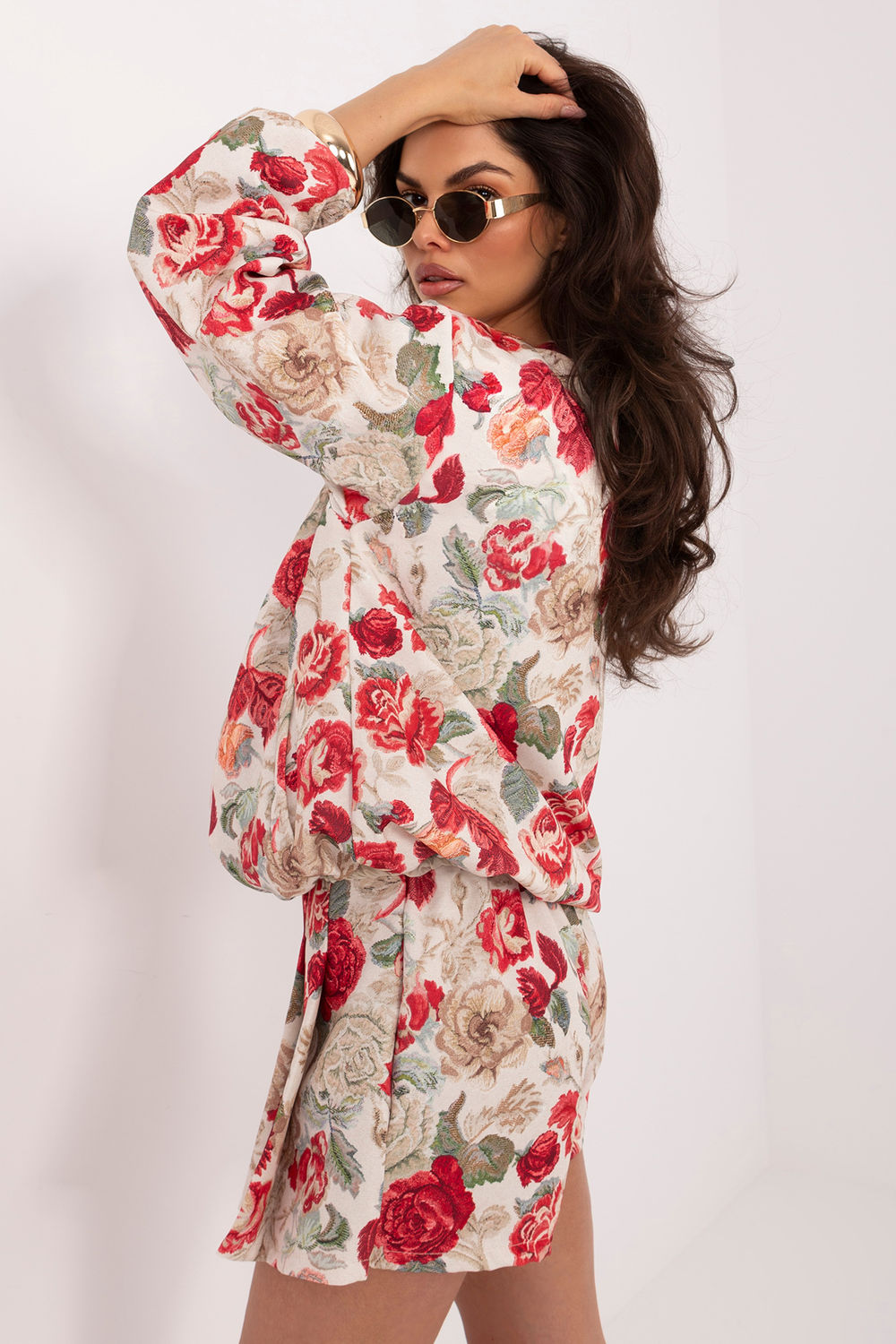 Μοδάτο γυναικείο μπουφάν τύπου bomber, ιδανικό για την άνοιξη/καλοκαίρι. Σχεδιασμένο σε casual στυλ, ταιριάζει τέλεια στις καθημερινές στυλιστικές επιλογές, προσθέτοντας ελαφρότητα και γυναικεία χαρακτήρα. Το μοντέλο διακρίνεται από εντυπωσιακή εκτύπωση λουλουδιών, που προσελκύει την προσοχή και εναρμονίζεται με τις τρέχουσες τάσεις. Το μπουφάν είναι κατασκευασμένο από υψηλής ποιότητας μείγμα πολυεστέρα με προσθήκη ελαστάνης, γεγονός που το καθιστά άνετο, ελαφρύ και καλά προσαρμοσμένο στη σιλουέτα. Δεν διαθέτει μόνωση ή γέμιση, πράγμα που το καθιστά ιδανική επιλογή για ζεστές ημέρες. Το bomber έχει κανονικό μήκος, μακριά, ελαφρώς φουσκωτά μανίκια και πρακτικές τσέπες. Το φερμουάρ εξασφαλίζει άνεση στη χρήση, ενώ η απουσία κουκούλας και γιακα δείχνει τον μινιμαλιστικό, μοντέρνο χαρακτήρα του. Η πρόσθετη επένδυση αυξάνει την άνεση στην εφαρμογή και την αισθητική της ολοκλήρωσης. Είναι μια εξαιρετική πρόταση για γυναίκες που εκτιμούν την άνεση και το στυλ, ταιριάζει τέλεια τόσο με τζιν όσο και με φορέματα ή φούστες.