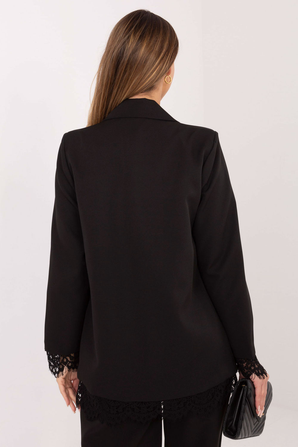 Η κομψή γυναικεία σαλοπέτα είναι ένα καθολικό στοιχείο της γκαρνταρόμπας, που μπορεί να φορεθεί καθημερινά, στη δουλειά, καθώς και σε επίσημες ή κοινωνικές εκδηλώσεις. Η κλασική γραμμή με το στάνταρ μήκος αναδεικνύει την σιλουέτα και προσδίδει στυλ στην εμφάνιση. Το μοντέλο διαθέτει υπερσύγχρονα καπέλα και ραμμένα μαξιλάρια στους ώμους, που προσδίδουν στην σαλοπέτα έντονη μορφή και οπτικά διαμορφώνουν τη γραμμή των ώμων. Η μονή κουμπωτή κλείσιμο τονίζει τον κομψό χαρακτήρα όλης της σύνθεσης, ενώ το ομαλό σχέδιο καθιστά τη σαλοπέτα διαχρονική και εύκολη στην στυλοποίηση. Ένα ιδιαίτερο στοιχείο είναι οι δαντελωτές λεπτομέρειες, τόσο στο κάτω μέρος της σαλοπέτας όσο και στους μακριούς μανικιού, που προσθέτουν μια γυναικεία ελαφρότητα και διακριτή κομψότητα. Κατασκευασμένη από μίγμα πολυεστέρα και ελαστάνης, προσφέρει άνεση κατά τη διάρκεια της χρήσης και καλή εφαρμογή. Η επένδυση αυξάνει την άνεση και διασφαλίζει ότι η σαλοπέτα κάθονται τέλεια στη σιλουέτα. Είναι μια ιδανική πρόταση για γυναίκες που αναζητούν μια κομψή σαλοπέτα με λεπτή, διακοσμητική λεπτομέρεια, κατάλληλη για πολλές διαφορετικές περιστάσεις.