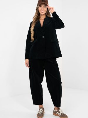 Μια στυλάτη γυναικεία κοτλέ σακάκι σε πιο casual εκδοχή, που ταιριάζει τέλεια τόσο για καθημερινές εμφανίσεις όσο και για το γραφείο. Αυτό το μοντέλο συνδυάζει την ελευθερία με την κομψότητα, καθιστώντας το εύκολο να το προσαρμόσετε σε πολλές στυλιστικές επιλογές, από κλασσικά υφασμάτινα παν trousers μέχρι τζιν ή μολυβένιες φούστες. Κατασκευασμένο από υψηλής ποιότητας βαμβάκι με προσθήκη ελαστάνης, προσφέρει άνεση κατά τη διάρκεια της ημέρας και ελαφριά ελαστικότητα, εξασφαλίζοντας άνεση όλη μέρα. Το λεία σχέδιο αναδεικνύει τον καθολικό χαρακτήρα της, ενώ η κοτλέ υφή προσθέτει λεπτή υφή και μοντέρνη πινελιά. Το μοντέλο διαθέτει μακριά μανίκια και κλασσικά καταλήξεις, που προσδίδουν στο σακάκι ένα διαχρονικό στυλ. Το τυπικό μήκος προσαρμόζεται καλά στη σιλουέτα, ενώ το μονό κουμπί τονίζει την κομψή γραμμή. Οι ψεύτικες τσέπες αποτελούν αισθητική ολοκλήρωση, διατηρώντας τον μινιμαλιστικό χαρακτήρα του σχεδίου. Αυτή είναι η ιδανική πρόταση για γυναίκες που εκτιμούν την άνεση, το στυλ και τη λειτουργικότητα στις καθημερινές και γραφειακές εμφανίσεις.