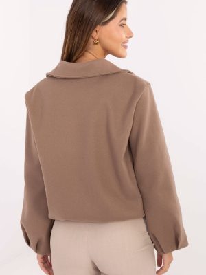 Ελαφρύ περιστασιακό μπουφάν με μοντέρνα, ελαφρώς χαλαρή γραμμή τύπου balloon, κατασκευασμένο από υψηλής ποιότητας πολυεστέρα. Το μοντέλο έχει κοντή γραμμή, μακρύ μανίκι και πρακτικό κλείσιμο με φερμουάρ, γεγονός που το καθιστά άνετο και λειτουργικό για καθημερινή χρήση. Το μπουφάν διαθέτει γιακά και επένδυση, που αυξάνει την άνεση χρήσης και του δίνει προσεγμένη φινίρισμα. Τα χαρακτηριστικά μανίκια με φουσκωτά σχέδια προσθέτουν στη σιλουέτα μια μοντέρνα, ελαφρώς αλαζονική εμφάνιση. Διατηρημένο σε απλό σχέδιο, συνδυάζεται τέλεια με casual στυλ και είναι ιδανικό για την περίοδο φθινοπώρου-χειμώνα-άνοιξης ως στυλάτο μπουφάν για καθημερινή χρήση.