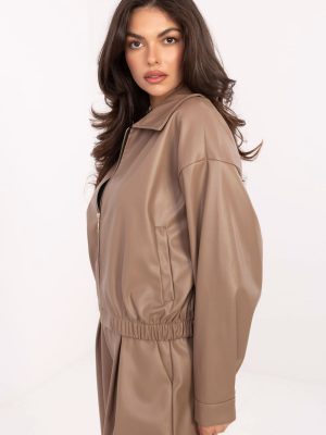 Μια κοντή, εφήμερη γυναικεία jacket από οικολογικό δέρμα σε casual στυλ, ιδανική για καθημερινές εξόδους στη διάρκεια της σεζόν φθινόπωρο;χειμώνας;άνοιξη. Κατασκευασμένη από συνδυασμό πολυεστέρα και πολυουρεθάνης, συνδυάζει τη μοντέρνα εμφάνιση με την αντοχή του υλικού. Το μοντέλο διαθέτει φαρδύ γιακά που προσθέτει χαρακτήρα στο σύνολο και πρακτικές τσέπες. Το κλείσιμο με φερμουάρ εξασφαλίζει άνετη χρήση, ενώ η λεία ύφανση υπογραμμίζει τον μινιμαλιστικό, σύγχρονο σχεδιασμό. Η jacket είναι ιδανική ως ελαφριά θερμαντική στρώση τις ψυχρές μέρες, συνδυάζοντας λειτουργικότητα με μοντέρνο casual στυλ.