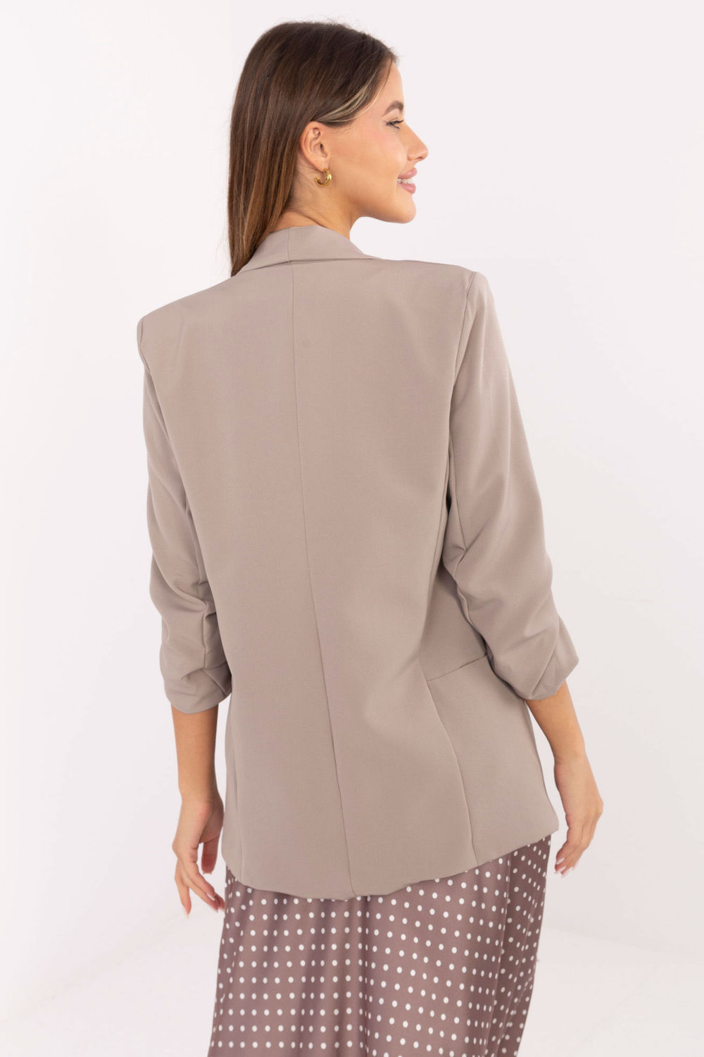 Μια κομψή γυναικεία σακακιέρα είναι ένα κλασικό στοιχείο της γκαρνταρόμπας που θα προσθέσει κομψότητα σε κάθε στυλιστική επιλογή, τόσο για το γραφείο όσο και για επίσημες περιστάσεις. Κατασκευασμένη από ελαστικό μείγμα πολυεστέρα και ελαστάνης, προσαρμόζεται τέλεια στη σιλουέτα και παρέχει άνεση κατά τη διάρκεια της χρήσης. Το μοντέλο διαθέτει ραμμένα μαξιλαράκια στους ώμους που τονίζουν διακριτικά τη γραμμή των ώμων, ενώ οι πτυχές στα μανίκια προσθέτουν σε όλο το σύνολο μια σύγχρονη αίσθηση και ελαφρότητα. Το μανίκι 3/4 και το κανονικό μήκος καθιστούν τη σακακιέρα καθολική και κομψή σε κάθε κατάσταση. Η σακακιέρα είναι χωρίς κλείσιμο, με πρακτική επένδυση, αποτελεί μια κομψή βάση για πολλά σύνολα, από καθημερινά, γραφείου έως πιο επίσημα στυλ.