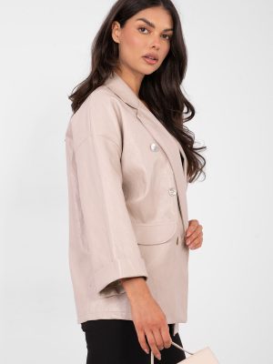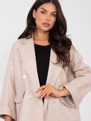 Η μοντέρνα γυναικεία σακάκι από οικολογικό δέρμα είναι μια κομψή πρόταση για casual και επαγγελματικές εμφανίσεις. Κατασκευασμένο από υλικό υψηλής ποιότητας, που είναι συνδυασμός βισκόζης και πολυουρεθάνης, παρουσιάζεται κομψά και ταυτόχρονα είναι άνετο στη χρήση. Το μοντέλο μήκους τυπικού διαθέτει αναδιπλούμενους γιακάδες, οι οποίοι τονίζουν το κλασικό σχέδιο. Η διπλή κουμπωτή σφραγίδα δίνει στο σακάκι έναν έντονο, σύγχρονο χαρακτήρα. Οι ψευδείς τσέπες παίζουν διακοσμητικό ρόλο, διατηρώντας τη καθαρή, λεία γραμμή μπροστά. Το σακάκι έχει μακριά μανίκια, δεν είναι θερμαινόμενο ούτε γεμάτο, γι’ αυτό και είναι ιδανικό για την άνοιξη / φθινόπωρο / χειμώνα ως στοιχείο στρωματοποιημένων εμφανίσεων. Το ομοιόμορφο σχέδιο το καθιστά καθολικό και εύκολο να συνδυαστεί τόσο με παντελόνια από ύφασμα όσο και με τζιν ή φόρεμα. Είναι η ιδανική επιλογή για γυναίκες που εκτιμούν τον σύγχρονο στυλ, την κομψότητα και τον διαχρονικό σχεδιασμό.