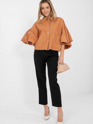 Στυλάτη γυναικεία τζιν μπουφάν σε casual στυλ, ιδανικό για την άνοιξη και το καλοκαίρι. Κατασκευασμένο από υψηλής ποιότητας βαμβάκι, προσφέρει άνεση κατά την καθημερινή χρήση. Η κοντή γραμμή αναδεικνύει υπέροχα τη σιλουέτα, ενώ το τελείωμα και τα μανίκια με μόγγια προσθέτουν ελαφρότητα και χαρακτήρα στο σύνολο. Το μοντέλο κλείνει με κουμπιά και διαθέτει πρακτικές ραμμένες τσέπες μπροστά. Τα μανίκια 3/4 με φούστα εισάγουν μια διακριτική, γυναικεία αίσθηση, η οποία σπάει υπέροχα τον κλασικό τζιν στυλ. Το μπουφάν είναι χωρίς επένδυση, γεγονός που το καθιστά εξαιρετική επιλογή για πιο ζεστές ημέρες. Είναι μία καθολική πρόταση για καθημερινές εμφανίσεις, ιδανική τόσο για φορέματα, όσο και για τζιν ή φούστες.