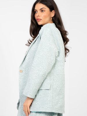 Εκλεπτυσμένο γυναικείο σακάκι με κανονικό μήκος, το οποίο συνδυάζει άριστα την κομψότητα με μια λεπτή νότα πρωτοτυπίας. Το μοντέλο ξεχωρίζει για την ποικιλόμορφη υφή του υλικού και την εντυπωσιακή ανάγλυφη λουλουδένια διακόσμηση, που προσφέρει σε όλη τη σύνθεση μια μοναδική, γυναικεία αίσθηση. Κατασκευασμένο από υψηλής ποιότητας μείγμα πολυεστέρα και βισκόζης, προσφέρει άνεση στη χρήση, αντοχή και αισθητική εμφάνιση για μεγάλο χρονικό διάστημα. Το μακρύ μανίκι και οι φουσκωτές πέτες υπογραμμίζουν την διαχρονική σιλουέτα, ενώ το μονό κουμπί προσθέτει κομψότητα και ευχρηστία. Το σακάκι διαθέτει επένδυση, εξασφαλίζοντας τέλεια εφαρμογή στη σιλουέτα και άνεση κατά τη χρήση. Είναι η ιδανική επιλογή τόσο για επαγγελματικές εμφανίσεις όσο και για ιδιαίτερες περιστάσεις, όταν θέλετε να φαίνεστε κομψά και με στυλ.