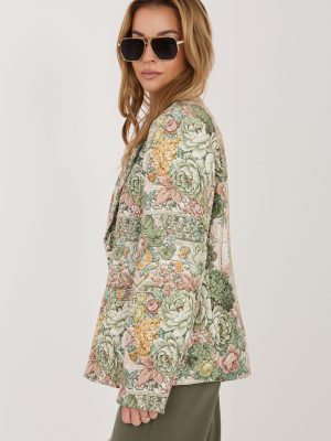 Μια κομψή γυναικεία σακάκι με κανονικό μήκος, σχεδιασμένη με γνώμονα το στυλ και την άνεση. Το μοντέλο ξεχωρίζει για την εντυπωσιακή εκτύπωση με λουλούδια, που προσδίδει σε όλη την φιγούρα γυναικεία και μοντέρνα χαρακτήρα. Κατασκευασμένο από μείγμα υψηλής ποιότητας πολυεστέρα με προσθήκη ελαστάνης, γεγονός που καθιστά το υλικό ελαφρώς ελαστικό και άνετο στην χρήση. Το σακάκι διαθέτει μακριά μανίκια και κλασικές πέτες, που αναδεικνύουν την διαχρονική του γραμμή. Κλείνει με κουμπιά σε μονή διάταξη, δίνοντάς του κομψή και περιποιημένη εμφάνιση. Ένα επιπλέον πλεονέκτημα είναι ότι έχει επένδυση, η οποία αυξάνει την άνεση χρήσης και την αισθητική του φινιρίσματος. Ενσωματωμένα μαξιλάρια στους ώμους διαμορφώνουν ελαφρώς τη σιλουέτα, δίνοντάς της πιο καθαρή γραμμή. Ιδανικό τόσο για γραφειακά στυλ όσο και για καθημερινές εμφανίσεις, συνδυάζεται τέλεια με κομψά παντελόνια, φούστες ή τζιν.
