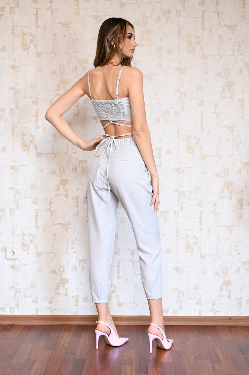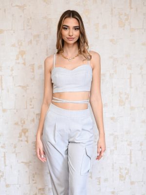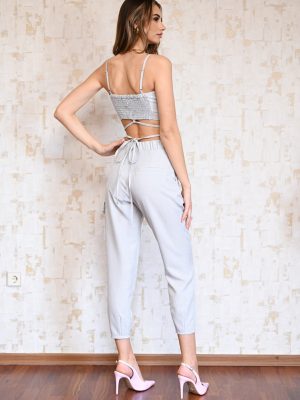 Μπούστο σε γκρί χρώμα με τιράντες, σφηκοφωλιά στην πλάτη και κορδόνια που δένουν στη μέση