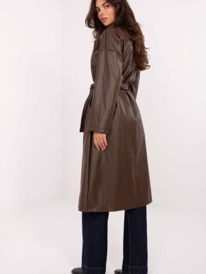 Γυναικείο δερμάτινο παλτό με διαχρονικό, casual χαρακτήρα, ιδανικό ως μεταβατικό εξωτερικό ρούχο για το φθινόπωρο, τον χειμώνα και την άνοιξη. Κατασκευασμένο από υψηλής ποιότητας μίγμα πολυεστέρα και πολυουρεθάνης, ξεχωρίζει για την ομαλή υφή του και την κομψή εμφάνιση. Το μοντέλο μήκους μέχρι το γόνατο έχει σχεδιαστεί με προσοχή στη λεπτομέρεια: διαθέτει κλασικά πέτα, κρυφές τσέπες και μακριά μανίκια. Το διπλό κούμπωμα με κουμπιά του προσδίδει κομψότητα, ενώ η ζώνη στη μέση επιτρέπει την ανάδειξη της σιλουέτας και την προσαρμογή του στυλ στις προσωπικές προτιμήσεις. Ελαφρύ, χωρίς επένδυση, θα τα αποκτήσει καλά στις καθημερινές εμφανίσεις, συνδυάζοντας άνεση με μοντέρνο, διαχρονικό σχεδιασμό. Είναι ένα καθολικό παλτό που θα προσθέσει κομψότητα σε κάθε ντύσιμο.