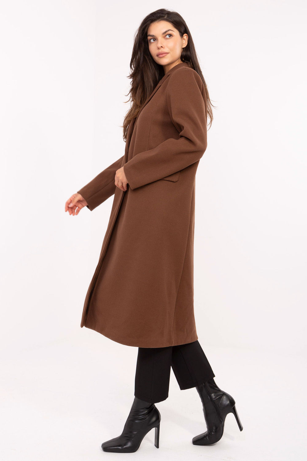 Ένα κομψό γυναικείο παλτό με μακρύ κόψιμο είναι ένα διαχρονικό μοντέλο που ταιριάζει εξίσου για καθημερινές εμφανίσεις, όσο και για στυλ στη δουλειά ή κατά τις επίσημες περιστάσεις. Κατασκευασμένο από πολυέστερ, με ομαλή υφή υλικού, παρουσιάζεται ελάχιστα και κομψά, τονίζοντας τον κλασικό του χαρακτήρα. Το παλτό διαθέτει ραμμένες μαξιλαροθήκες στους ώμους, που προσφέρουν στη σιλουέτα μια σαφή γραμμή και κομψή αίσθηση. Οι πέτα και το μονογραμμικό κλείσιμο με κουμπιά αναδεικνύουν το διαχρονικό του σχέδιο. Το μοντέλο είναι εξοπλισμένο με επένδυση και πρακτικές τσέπες που είναι τοποθετημένες κάτω από τις πατιλέτες, οι οποίες συμπληρώνουν τη συνολική εικόνα. Είναι ένα ελαφρύ, μεταβατικό παλτό, ιδανικό για την εποχή του φθινοπώρου, του χειμώνα και της άνοιξης, τέλεια επιλογή για γυναίκες που εκτιμούν την κλασική μόδα σε σύγχρονη έκδοση.
