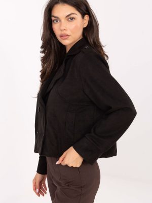 Ένα κοντό παλτό από σουέτ είναι μια κομψή πρόταση σε κανονικό στυλ, ιδανικό για καθημερινές εμφανίσεις και για τη δουλειά. Κατασκευασμένο από μείγμα πολυεστέρα και ελαστάνης, συνδυάζει άνεση με κομψό στυλ. Η διπλή κουμπίδα και οι πέτοι προσθέτουν μια κλασική αίσθηση. Οι επιθεματικοί ώμοι υπογραμμίζουν τη μοντέρνα, κάπως στρατιωτική αισθητική. Το απλό σχέδιο και το κοντό μήκος καθιστούν το παλτό ιδανικό για διάφορες εμφανίσεις. Το μακρύ μανίκι το καθιστά πρακτική επιλογή για τις ψυχρότερες ημέρες της σεζόν φθινόπωρο/χειμώνα/άνοιξη. Πρόκειται για ένα μεταβατικό μοντέλο, χωρίς επένδυση, τέλειο ως ελαφρύ εξωτερικό ρούχο. Είναι ένα παλτό που συνδυάζει την απλότητα με την κομψότητα και θα ολοκληρώσει εξαιρετικά τις καθημερινές εμφανίσεις.
