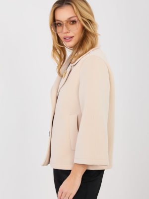 Ένα κομψό γυναικείο παλτό μεταβατικής περιόδου κατασκευασμένο από μοντέρνο υλικό αφρού είναι μια στυλάτη πρόταση για την εποχή του φθινοπώρου, του χειμώνα και της άνοιξης. Ραμμένο από υψηλής ποιότητας συνδυασμό πολυεστέρα και ελαστάνης, εξασφαλίζει άνεση φορώντας, ελαφρότητα και αισθητική εφαρμογή στο σωματοτύπο. Το μοντέλο με κοντό μήκος και λεία υφή ταιριάζει τέλεια τόσο σε καθημερινές εμφανίσεις, όσο και στη δουλειά. Το μανίκι μήκους 3/4 προσδίδει στο παλτό μια διακριτική κομψότητα και ελαφρότητα. Η μονής σειράς κουμπώματος τονίζει τον κλασικό χαρακτήρα της γραμμής. Το παλτό δεν διαθέτει θερμαντικά ή γέμιση, γεγονός που το καθιστά ιδανικό ως μεταβατικό επικάλυμμα. Οι πρακτικές τσέπες προσθέτουν λειτουργικότητα, ενώ η διακοσμητική καρφίτσα αποτελεί μια κομψή λεπτομέρεια που ολοκληρώνει την εμφάνιση.