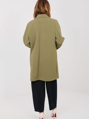Ένα κομψό γυναικείο παλτό με κλασική γραμμή είναι η ιδανική πρόταση για την ενδιάμεση περίοδο, το φθινόπωρο, το χειμώνα και την άνοιξη. Το μοντέλο αποδεικνύεται εξαιρετικά κατάλληλο τόσο για καθημερινές εμφανίσεις, όσο και ως εξωτερικό ένδυμα για τη δουλειά, υπογραμμίζοντας μια επαγγελματική και στυλάτη εμφάνιση. Κατασκευασμένο από υψηλής ποιότητας υλικό αφρού βασισμένο σε πολυεστέρα με προσθήκη ελαστάνης, το παλτό είναι ελαφρύ, ελαστικό και ευχάριστο στη χρήση. Ο ιστός διατηρεί καλά τη φόρμα του, ενώ ταυτόχρονα προσφέρει άνεση και ελευθερία κινήσεων. Το μοντέλο χωρίς επένδυση είναι ιδανικό ως καθολικό εξωτερικό ένδυμα για πιο ζεστές, ενδιάμεσες ημέρες. Το παλτό έχει κανονικό μήκος και μακριά μανίκια. Ο κλασικός γιακάς και οι αναδιπλούμενοι κολάροι του προσδίδουν διαχρονική κομψότητα. Το μοντέλο κλείνει με ένα κουμπί, υποδεικνύοντας τον μινιμαλιστικό χαρακτήρα της γραμμής, ενώ οι πρακτικές τσέπες προσθέτουν λειτουργικότητα. Το σύνολο ολοκληρώνεται με μια διακοσμητική πρόσθεση τοποθετημένη στον κολάρο, προσφέροντας μια στυλάτη, γυναικεία πινελιά.