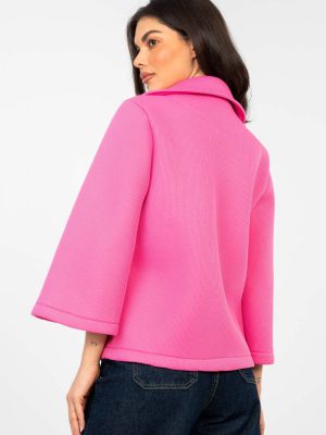 Η κοντή γυναικεία παλτό μεταβατική είναι η ιδανική πρόταση για τις γυναίκες που εκτιμούν το casual στυλ και τις οικουμενικές λύσεις στην καθημερινή τους ζωή και στη δουλειά. Εξαιρετικά θα λειτουργήσει κατά την φθινοπωρινή, χειμερινή και ανοιξιάτικη περίοδο, αποτελώντας μια στυλάτη προσθήκη σε πολλές εμφανίσεις. Το μοντέλο κατασκευάζεται από ένα υλικό αφρού βασισμένο σε πολυεστέρα με προσθήκη ελαστάνης και διακρίνεται για την ποικιλόμορφη υφή του, που προσδίδει στη συνολική εμφάνιση μια σύγχρονη χαρακτήρα. Το ύφασμα είναι ευχάριστο στην αίσθηση, ελαστικό και βολικό στην εφαρμογή στο σώμα, εξασφαλίζοντας άνεση στην κατανάλωση. Το παλτό δεν διαθέτει θέρμανση ή γέμισμα, γι’ αυτό και λειτουργεί τέλεια ως ελαφρύ εξωτερικό στρώμα κατά τις μεταβατικές περιόδους. Ο κοντός σχεδιασμός και το μανίκι 3/4 τονίζουν λεπτεπίλεπτα τη σιλουέτα και προσφέρουν ελαφρότητα στην εμφάνιση. Ο κλασικός γιακάς με καμπυλωτές πέτες προσθέτει κομψότητα, ενώ το μονοδιάστατο κλείσιμο με κουμπιά τονίζει την διαχρονική φύση του μοντέλου. Οι πρακτικές τσέπες που εισέρχονται αυξάνουν τη λειτουργικότητα και την ευκολία στη χρήση. Αυτό είναι ένα πολυλειτουργικό παλτό, που μπορείς να ταιριάξεις εύκολα τόσο με κομψά παντελόνια και πουκάμισα όσο και με πιο χαλαρές, καθημερινές εμφανίσεις.