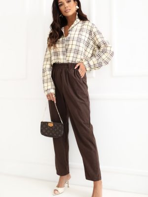 Τα παντελόνια από κοτλέ τύπου paperbag είναι μια κομψή και άνετη πρόταση για καθημερινή χρήση αλλά και για τη δουλειά. Η υψηλή μέση με εσωτερική ελαστική ταινία αναδεικνύει υπέροχα τη μέση, διασφαλίζοντας ταυτόχρονα άνεση κατά την όψη και ιδανική εφαρμογή στο σώμα. Το μοντέλο διαθέτει μακριά, ελαφρώς στενά μπατζάκια, τα οποία οπτικά λεπταίνουν τα πόδια και προσδίδουν στο σύνολο μοντέρνο χαρακτήρα. Ο λείος ύφασμα με την υφή κοτλέ, κατασκευασμένο από πολυεστέρα, είναι ευχάριστος στην αφή και πρακτικός στη χρήση. Τα παντελόνια δεν διαθέτουν κλασικό κούμπωμα, γεγονός που αυξάνει την άνεση και διευκολύνει την προσαρμογή τους. Οι λειτουργικές, πλάγιες τσέπες προσθέτουν στην καθημερινή χρηστικότητα τους. Πρόκειται για ένα πολυδιάστατο μοντέλο που συνδυάζει τη μοντέρνα εμφάνιση με την άνεση, ιδανικό για πολλές στυλιστικές προτάσεις.