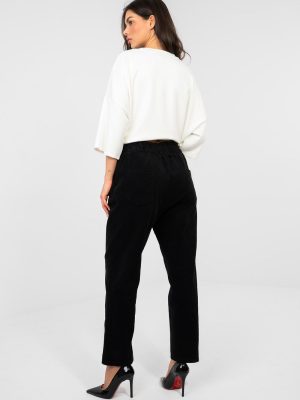 Τα στυλάτα παντελόνια καμπάνα τύπου paperbag είναι μια άνετη και κομψή επιλογή για κάθε μέρα. Το μοντέλο με τη ψηλή μέση αναδεικνύει όμορφα τη μέση, ενώ η ελαστική ζώνη στη μέση παρέχει άνεση και ιδανική εφαρμογή στη σιλουέτα. Η απουσία κλεισίματος προσθέτει ακόμη περισσότερη άνεση και δίνει ένα αβίαστο χαρακτήρα στο σύνολο. Οι κομμένες σε σχήμα κωνικού ποδιού λεπταίνουν διακριτικά τα πόδια, ενώ οι πλαϊνές τσέπες είναι πρακτικές. Τα παντελόνια έχουν κατασκευαστεί από μείγμα βαμβακιού και ελαστάνης, γεγονός που τα καθιστά μαλακά, ευχάριστα στην αφή και ελαστικά. Είναι μια εξαιρετική επιλογή για καθημερινές εμφανίσεις, συνδυάζονται τέλεια τόσο με ένα απλό T-shirt, όσο και με μια oversized μπλούζα ή έναν εφαρμοστό πλεκτό.