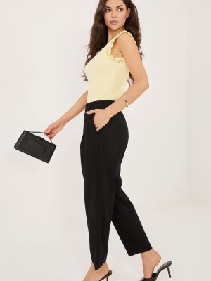 Τα παντελόνια τύπου paperbag από καρό είναι μια στυλάτη και άνετη πρόταση για καθημερινή χρήση καθώς και για δουλειά. Η ψηλή μέση με κρυφή ελαστική ζώνη αναδεικνύει όμορφα τη μέση, παρέχοντας παράλληλα άνεση κατά την εφαρμογή και άριστο ταίριασμα με τη σιλουέτα. Το μοντέλο διαθέτει μακριά, ελαφρώς στενά μποτσιά που οπτικά αδυνατίζουν τα πόδια και προσδίδουν στη συνολική εικόνα έναν σύγχρονο χαρακτήρα. Το λείο υλικό με υφή καρό, κατασκευασμένο από πολυεστέρα, είναι ευχάριστο στην αφή και πρακτικό στη χρήση. Τα παντελόνια δεν έχουν κλασικό κούμπωμα, γεγονός που αυξάνει την άνεση και διευκολύνει την ανάρτηση. Οι λειτουργικές, πλαϊνές τσέπες προσθέτουν καθημερινή χρηστικότητα. Είναι ένα πολυδιάστατο μοντέλο που συνδυάζει την κομψή εμφάνιση με την άνεση, ιδανικό για πολλές στυλιστικές επιλογές.