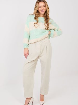 Τα στιλάτα παντελόνια καρότς είναι μια εξαιρετική πρόταση για καθημερινή χρήση καθώς και για τη δουλειά. Ο καζουάλ χαρακτήρας σε συνδυασμό με κομψές λεπτομέρειες καθιστά το μοντέλο ιδανικό για αστικές στυλιστικές επιλογές. Το ομοιόμορφο σχέδιο υπογραμμίζει τον διαχρονικό χαρακτήρα των παντελονιών και διευκολύνει την συνδυαστικότητα με διάφορα στοιχεία της γκαρνταρόμπας. Το μοντέλο με υψηλή μέση τονίζει όμορφα τη μέση, ενώ η ελαστική ζώνη στη μέση εξασφαλίζει άνετη εφαρμογή στη σιλουέτα. Ένα επιπλέον πλεονέκτημα είναι η κουμπωτή ζώνη που προσδίδει μια κομψή ολοκλήρωση στο σύνολο. Οι στενές ποδιές και οι διακοσμητικές πιέτες μπροστά δίνουν στο παντελόνι μια μοντέρνα, ελαφρώς κομψή αίσθηση και αποστραγγίζουν οπτικά τη σιλουέτα. Τα παντελόνια είναι κατασκευασμένα από ένα ευχάριστο μείγμα βαμβακιού με πρόσθετο ελαστάν, εξασφαλίζοντας άνεση κατά τη χρήση και ελευθερία κινήσεων. Οι πλαϊνές τσέπες προσθέτουν λειτουργικότητα στο μοντέλο. Είναι μια άνετη και στιλάτη πρόταση για πολλές καθημερινές περιστάσεις.