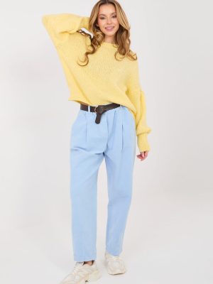 Stylowe παντελόνια καρότου είναι μια εξαιρετική πρόταση για καθημερινή χρήση καθώς και για εργασία. Ο casual χαρακτήρας σε συνδυασμό με τις κομψές λεπτομέρειες καθιστά το μοντέλο ιδανικό για αστικές ενδυματολογίες. Το απαλό σχέδιο υπογραμμίζει τον διαχρονικό χαρακτήρα των παντελονιών και διευκολύνει τον συνδυασμό τους με διάφορα στοιχεία της γκαρνταρόμπας. Το μοντέλο με ψηλή μέση τονίζει όμορφα την μέση, ενώ η ελαστική ζώνη στον μέσον εξασφαλίζει άνετο προσαρμογή στην σιλουέτα. Επιπλέον πλεονέκτημα είναι η ιμάντας που κλείνει, ο οποίος προσθέτει μια κομψή φινέτσα στο σύνολο. Οι στενές ποδιές και οι διακοσμητικές πτυχές μπροστά προσδίδουν στα παντελόνια μια μοντέρνα, ελαφρώς κομψή αίσθηση ενώ οπτικά αδυνατίζουν τη σιλουέτα. Τα παντελόνια είναι κατασκευασμένα από ευχάριστη στην αφή μίγμα βαμβακιού με πρόσθετο ελαστάν, κάτι που εγγυάται άνεση κατά τη διάρκεια της φθοράς και ελευθερία κινήσεων. Οι πλαϊνές τσέπες αυξάνουν τη λειτουργικότητα του μοντέλου. Είναι μια άνετη και κομψή πρόταση για πολλές καθημερινές περιστάσεις.