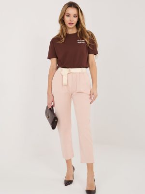 Γυναικείο παντελόνι από βελούδο σε κομψή γραμμή τύπου καπri, που είναι ιδανικό για καθημερινές εμφανίσεις. Κατασκευασμένο από υψηλής ποιότητας μείγμα βαμβακιού και ελαστάνης, προσφέρει άνεση κατά την ένδυση, ελαστικότητα και τέλεια εφαρμογή στο σχήμα του σώματος. Το μοντέλο με ελαστική ζώνη στη μέση εξασφαλίζει άνεση και ελευθερία κινήσεων, ενώ η επιπλέον ρυθμιζόμενη ζώνη τονίζει τη μέση και προσθέτει κομψό χαρακτήρα στο σύνολο. Τα στενά πόδια μήκους 7/8 οπτικά αδυνατίζουν τη σιλουέτα και προσφέρουν ένα σύγχρονο look. Παντελόνι με ομαλό σχέδιο, χωρίς κλασικό κούμπωμα, εξοπλισμένο με πρακτικές πλαϊνές τσέπες εισόδου, συνδυάζει λειτουργικότητα και διαχρονική κομψότητα.