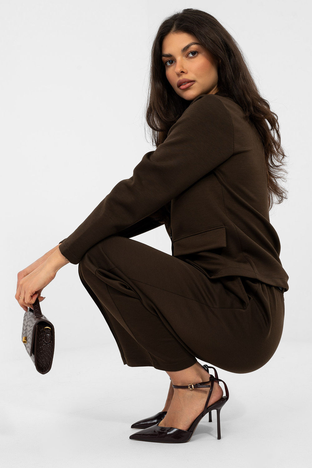 Σύγχρονα παντελόνια φόρμας με κομψό χαρακτήρα, τα οποία είναι ιδανικά τόσο για καθημερινή χρήση, όσο και για εργασιακές ή επίσημες περιστάσεις. Είναι ο ιδανικός συνδυασμός άνεσης και σικ σε σύγχρονο στυλ. Κατασκευασμένα από υψηλής ποιότητας βισκόζη με πρόσθετο ελαστάν, προσφέρουν άνεση, απαλότητα και ελευθερία κίνησης. Ο απλός σχεδιασμός και η προσεγμένη κοπή τους προσδίδουν κομψή εμφάνιση. Το μοντέλο με τη ψηλή μέση και τις στενές τσέπες, οι οποίες έχουν ραφτεί ευθεία, οπτικά επιμηκύνουν τα πόδια και τονίζουν τη σιλουέτα. Η απουσία κλασικού κλεισίματος αυξάνει την άνεση στη χρήση, ενώ οι ενσωματωμένες τσέπες προσθέτουν λειτουργικότητα. Ένα επιπλέον πλεονέκτημα είναι η ζώνη με δυνατότητα κλεισίματος, η οποία τονίζει τη μέση και προσδίδει στα παντελόνια πιο κομψό χαρακτήρα. Είναι η ιδανική επιλογή για γυναίκες που εκτιμούν την άνεση των φόρμας συνδυασμένη με κομψό στυλ.