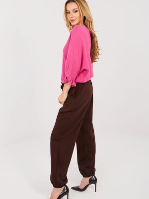Τα κομψά παντελόνια φόρμας joggers είναι ένας συνδυασμός άνεσης και στυλάτης φινέτσας. Το μοντέλο με μακριά μπατζάκια που καταλήγουν σε λάστιχο κάθεται τέλεια στη σιλουέτα, προσφέροντας έναν σύγχρονο χαρακτήρα. Το λείο σχέδιο ενισχύει την ευχρηστία τους και τα καθιστά εξαιρετικά κατάλληλα τόσο για καθημερινές όσο και για πιο προσεγμένες στυλιστικές προτάσεις. Στη μέση υπάρχει ελαστική ζώνη που εξασφαλίζει άνετη εφαρμογή και άνεση καθ’ όλη τη διάρκεια της ημέρας. Οι πλαϊνές τσέπες προσθέτουν λειτουργικότητα, ενώ η διακριτική καρφίτσα σε σχήμα λουλουδιού αποτελεί μια κομψή, γυναικεία λεπτομέρεια. Τα παντελόνια είναι κατασκευασμένα από ένα εξαιρετικά απαλό υλικό, τύπου βουτύρου, από μαλακή και λεπτή μίξη πολυεστέρα, βισκόζης και ελαστάνης. Ο ύφασμα κάθεται όμορφα στο σώμα, εξασφαλίζοντας ελευθερία κινήσεων και υψηλή άνεση κατά τη χρήση. Είναι η ιδανική πρόταση για γυναίκες που εκτιμούν την άνεση σε κομψό σχέδιο.