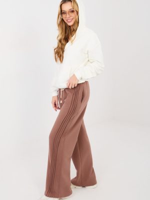 Γυναικείες παντελόνες τύπου wide leg είναι συνδυασμός άνεσης και μοντέρνου, casual στυλ. Κατασκευάζονται από υψηλής ποιότητας βαμβάκι με πρόσθετο πολυεστέρα, προσφέροντας άνεση κατά τη διάρκεια της χρήσης, αντοχή και ευχάριστο αίσθημα απαλότητας καθόλη τη διάρκεια της ημέρας. Το μοντέλο διακρίνεται από φαρδιές γραμμές που εφαρμόζουν ελεύθερα στη σιλουέτα και προσδίδουν μια σύγχρονη χαρακτήρα στο σύνολο. Η διακοσμητική ραφή που διατρέχει πλάγιες γραμμές καθ΄όλη τη διάρκεια του παντελονιού υπογραμμίζει διακριτικά τη γραμμή των ποδιών και προσθέτει μια πρωτότυπη πινελιά στα παντελόνια. Η ψηλή μέση τονίζει όμορφα τη μέση, ενώ η δέσιμο στη μέση σε συνδυασμό με τη ραμμένη ελαστικότητα εξασφαλίζει τέλεια εφαρμογή και άνεση κατά τη διάρκεια της χρήσης. Οι πρακτικές πλαϊνές τσέπες αυξάνουν τη λειτουργικότητα και καθιστούν τα παντελόνια ιδανικά για καθημερινές στυλιστικές προτάσεις. Το απλό σχέδιο και η καθολική γραμμή τους καθιστούν εξαιρετική βάση για πολλές συνθέσεις τόσο με φούτερ όσο και με εφαρμοστό τοπ.