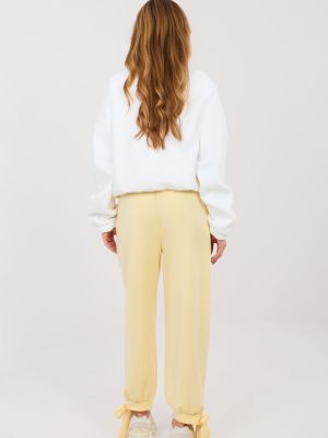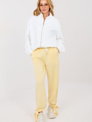 Οι άνετοι παντελόνες τύπου joggers είναι μια εξαιρετική πρόταση για καθημερινές casual στυλιστικές επιλογές. Είναι ιδανικές τόσο για καθημερινές εμφανίσεις όσο και για λιγότερο επίσημες εργασιακές ενδυμασίες, συνδυάζοντας την άνεση της χρήσης με μια μοντέρνα εμφάνιση. Το απλό σχέδιο τους προσδίδει έναν καθολικό χαρακτήρα και διευκολύνει την προσαρμογή σε διάφορα στοιχεία της γκαρνταρόμπας. Τα παντελόνια είναι κατασκευασμένα από μαλακή και ευχάριστη στην αφή βισκόζη με προσθήκη ελαστάνης, που διασφαλίζει ελαφρότητα, ελαστικότητα και ελευθερία κινήσεων καθ’ όλη τη διάρκεια της ημέρας. Η ψηλή μέση τονίζει τη μέση και εξασφαλίζει άνετη εφαρμογή, ενώ η δέσιμο στη μέση επιτρέπει ατομική ρύθμιση. Οι μανίκες που τελειώνουν με λάστιχο και δέσιμο προσδίδουν στα παντελόνια έναν αθλητικό-αστικό χαρακτήρα και εξασφαλίζουν καλή εφαρμογή. Ως πρακτικό προσθήκη, υπάρχουν πλαϊνές τσέπες κατάλληλες για μικροπράγματα. Πρόκειται για ένα καθολικό μοντέλο που ταιριάζει τέλεια με φούτερ, t-shirt ή κομψό πουκάμισο, δημιουργώντας μια στυλάτη και άνετη εμφάνιση.