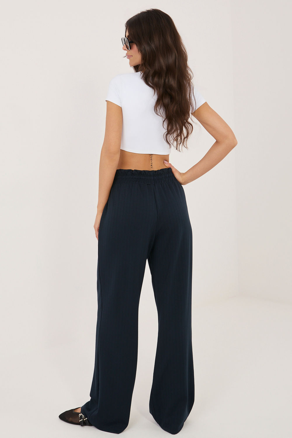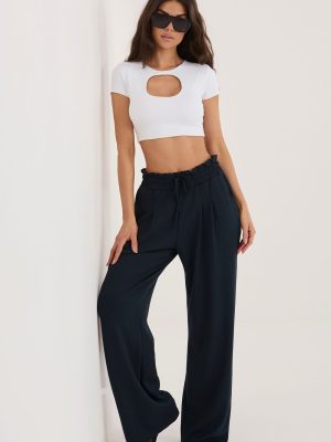 Τα παντελόνια τύπου straight leg είναι ένας συνδυασμός άνεσης και σύγχρονου στυλ, ιδανικά για καθημερινή χρήση. Το μοντέλο με τη ψηλή μέση και τη σούρα στη μέση προσφέρει άψογη εφαρμογή στο σώμα, τονίζοντας τη μέση και εξασφαλίζοντας άνεση κατά τη φορά. Η επιπλέον κορδέλα στη μέση επιτρέπει την ατομική προσαρμογή. Οι μακριές, ίσιες γάμπες προσδίδουν στην όλη εικόνα μια αδιάφορη, αλλά ταυτόχρονα τακτοποιημένη αίσθηση, γεγονός που καθιστά τα παντελόνια εξαιρετικά κατάλληλα τόσο για casual στυλ όσο και για πιο μινιμαλιστικές συνθέσεις. Κατασκευασμένα από ευχάριστο στην αφή μείγμα βισκόζης και ελαστάνης, εγγυώνται απαλότητα, ευελιξία και άνεση καθόλη τη διάρκεια της ημέρας. Οι πρακτικές, πλάγιες τσέπες αυξάνουν τη λειτουργικότητα του μοντέλου. Πρόκειται για ευέλικτα παντελόνια τύπου φόρμας που συνδυάζουν άνεση με μοντέρνα εμφάνιση.