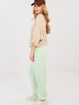 Οι κομψές παντελόνες joggers αποτελούν συνδυασμό άνεσης και στιλάτης εμφάνισης. Το μοντέλο με μακριά μπατζάκια που τελειώνουν με ελαστικές μανσέτες εφαρμόζει τέλεια στη σιλουέτα, προσδίδοντας έναν σύγχρονο χαρακτήρα. Το λείο σχέδιο υπογραμμίζει την ευχρηστία τους και τα καθιστά ιδανικά τόσο για καθημερινές όσο και για πιο προσεγμένες εμφανίσεις. Στην μέση περιέχει ελαστική ζώνη που εξασφαλίζει άνετη εφαρμογή και άνεση κατά τη διάρκεια όλης της ημέρας. Οι πλαϊνές τσέπες προσθέτουν λειτουργικότητα, ενώ η διακριτική καρφίτσα σε σχήμα λουλουδιού αποτελεί μία κομψή, γυναικεία πινελιά. Τα παντελόνια είναι φτιαγμένα από ιδιαίτερα ευχάριστο στην αφή υλικό τύπου βούτυρο, από μαλακό και λεπτό μίγμα πολυεστέρα, βισκόζης και ελαστάνης. Ο ύφασμα αγκαλιάζει όμορφα το σώμα, παρέχοντας ελευθερία κινήσεων και υψηλό επίπεδο άνεσης. Είναι η ιδανική πρόταση για γυναίκες που εκτιμούν την άνεση σε κομψή μορφή.