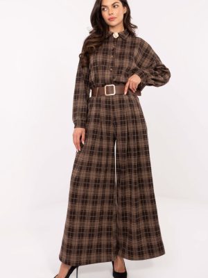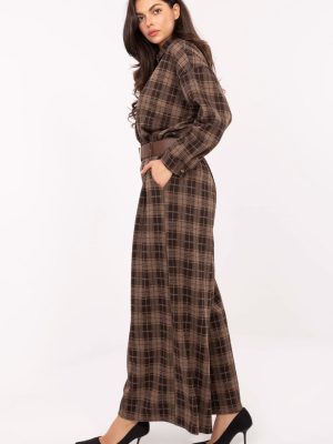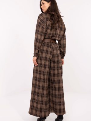 Σύγχρονο και άνετο γυναικείο παντελόνι φλαμάνκο palazzo με casual χαρακτήρα, ιδανικό για καθημερινές στυλιστικές επιλογές. Κατασκευασμένο από μείγμα υψηλής ποιότητας πολυεστέρα, βισκόζης και ελαστάνης, προσφέρει άνεση, ελαφρότητα και ελαφριά ελαστικότητα, πράγμα που επιτρέπει τέλεια εφαρμογή στη σιλουέτα. Το μοντέλο έχει ψηλή μέση και φαρδιές γάμπες τύπου palazzo, οι οποίες οπτικά επιμηκύνουν τα πόδια και δίνουν στη σιλουέτα ελαφρότητα. Πλευρικές, εφαρμοστές τσέπες και ζώνη με κούμπωμα προσθέτουν πρακτικότητα και επιτρέπουν να τονιστεί η μέση. Το παντελόνι έχει καρό σχέδιο, το οποίο εισάγει μια κλασική, διαχρονική αίσθηση, ενώ η έλλειψη κούμπωματος καθιστά το παντελόνι εξαιρετικά άνετο και εύκολο στη χρήση. Είναι ένα καθολικό μοντέλο που θα αποδειχθεί εξαιρετικό τόσο σε καθημερινές, casual στυλιστικές επιλογές, όσο και σε πιο κομψές συνθέσεις για τη δουλειά.