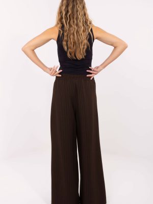Τα στιλάτα γυναικεία παντελόνια υφασμάτινου τύπου palazzo είναι εξαιρετική επιλογή για καθημερινή χρήση, για εργασία αλλά και για επίσημες περιστάσεις, όπου η κομψότητα και η μοντέρνα φόρμα μετράνε. Το διακριτικό σχέδιο με ρίγες οπτικά λεπταίνει τη σιλουέτα, προσδίδοντας ταυτόχρονα στο παντελόνι μια κομψή και κλασική αίσθηση. Το μοντέλο έχει κατασκευαστεί από μείγμα υψηλής ποιότητας νάιλον, βισκόζης, ελαστάνης και πολυεστέρα, χάρη στο οποίο το παντελόνι είναι ελαφρύ, αεριζόμενο, ελαστικό και άνετο στη χρήση. Η ψηλή μέση τονίζει όμορφα τη μέση, ενώ οι φαρδιές μπατζάκια τύπου palazzo προσδίδουν μια χαλαρή και ταυτόχρονα πολύ κομψή γραμμή. Στην πάνω πλευρά του μπροστινού μέρους υπάρχουν διακοσμητικά πιέτα, οι οποίες προσθέτουν στο παντελόνι μια μοναδική αίσθηση και υπογραμμίζουν διακριτικά το κομψό στυλ. Η πρακτική πρόσθεση με φερμουάρ και κουμπί εξασφαλίζει άνεση και σταθερή εφαρμογή. Αυτά τα παντελόνια συνδυάζουν τη διαχρονική κομψότητα με τη μοντέρνα κοπή, ιδανικά για γυναίκες που εκτιμούν την κομψότητα, την άνεση και τις εκλεπτυσμένες λεπτομέρειες.