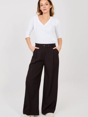 Οι κομψές γυναικείες παντελόνες τύπου wide leg είναι μια εξαιρετική επιλογή για καθημερινή χρήση, για το γραφείο και για πιο επίσημες περιστάσεις. Κατασκευασμένες από υψηλής ποιότητας πολυέστερ με προσθήκη ελαστάνης, παρέχουν άνεση στη χρήση, αντοχή και διακριτική ελαστικότητα που επιτρέπει την ελευθερία κινήσεων. Το λείο υλικό τους δίνει κλασικό και διαχρονικό χαρακτήρα. Το μοντέλο με ψηλή μέση αναδεικνύει όμορφα τη μέση και οπτικά μακραίνει τη σιλουέτα, ενώ οι μακριές, φαρδιές βάτες προσθέτουν στην εμφάνιση ελαφρότητα και κομψότητα. Τα παντελόνια κλείνουν με φερμουάρ και κουμπιά, εξασφαλίζοντας καλή εφαρμογή. Οι πρακτικές, πλευρικές τσέπες αυξάνουν τη λειτουργικότητα και την άνεση χρήσης. Συμπληρώνουν ιδανικά τόσο με πουκάμισο και σακάκι, όσο και με πιοCasual μπλούζα.