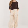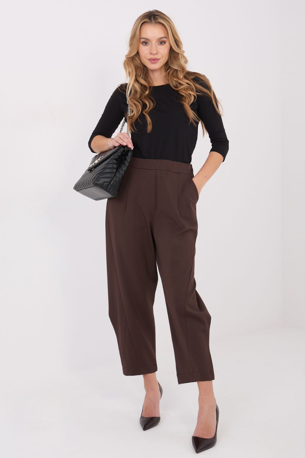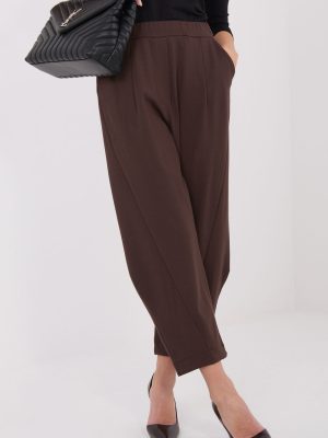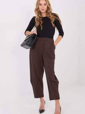 Άνετο και στιλάτο υφασμάτινο παντελόνι με casual χαρακτήρα, ιδανικό για καθημερινή χρήση και για το γραφείο. Κατασκευασμένο από μίγμα βισκόζης, νάιλον και ελαστάνης, προσφέρει άνεση, ευελιξία και κομψή εφαρμογή του υφάσματος. Η λεία, ομοιογενής σχεδίαση το καθιστά универсικό και εύκολο να συνδυαστεί με πολλά στυλ. Το μοντέλο διαθέτει ψηλή μέση, που αναδεικνύει υπέροχα τη μέση, και η ελαστική μέση εξασφαλίζει τέλεια εφαρμογή και άνεση χωρίς την ανάγκη κουμπώματος, καθώς το παντελόνι δεν έχει κούμπωμα. Οι τελειωμένες μπουκάλες προσθέτουν ελαφρότητα στη σιλουέτα και την επεκτείνουν οπτικά. Για μεγαλύτερη λειτουργικότητα, το παντελόνι είναι εξοπλισμένο με πλαϊνές, εισαγόμενες τσέπες που παραμένουν πρακτικές και ταυτόχρονα δεν διαταράσσουν τη μινιμαλιστική γραμμή ολόκληρου του μοντέλου. Άνετο, πρακτικό και στιλάτο, ιδανικό για καθημερινές, σύγχρονες στυλιστικές επιλογές.