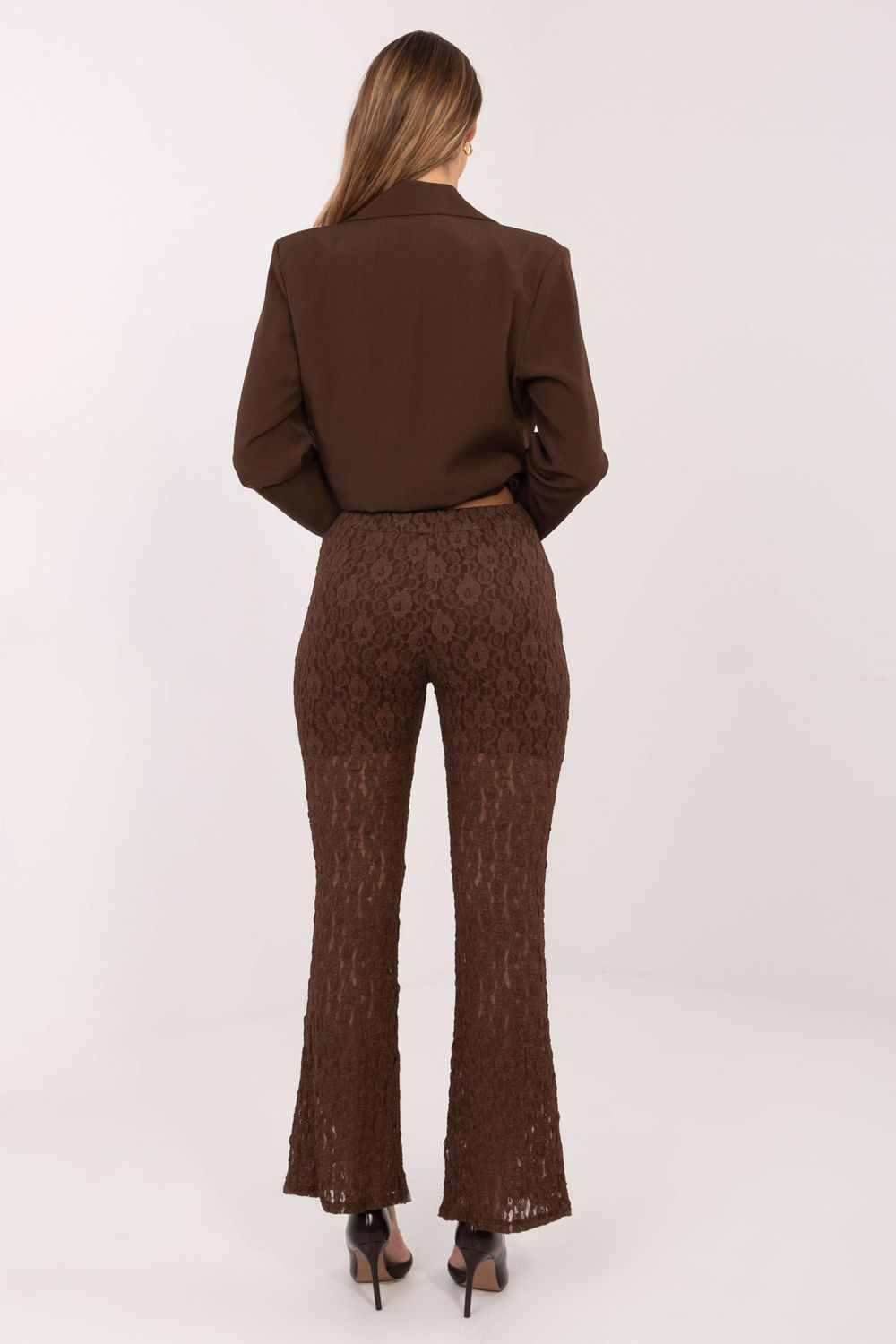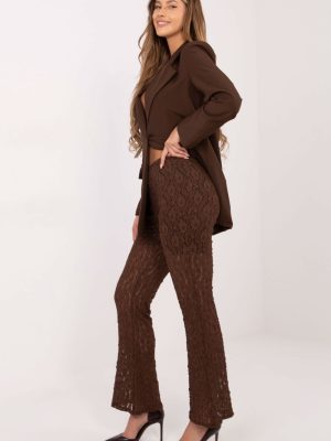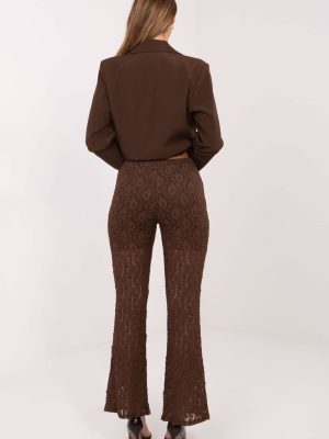 Οι κομψές γυναικείες δαντελωτές παντελόνες είναι ένα μοναδικό μοντέλο που συνδυάζει στυλ και άνεση. Φτιαγμένες από μείγμα βισκόζης και ελαστάνης, ξεχωρίζουν για τη ποικιλόμορφη υφή του υλικού, που τους δίνει μια διακριτική διακοσμητική χαρακτήρα. Η απλή γραμμή τύπου straight leg και το μακρύ πόδι δημιουργούν μια διαχρονική, αδύνατη σιλουέτα. Στη μέση έχει ραμμένη ελαστική ζώνη που εξασφαλίζει άνετη εφαρμογή, και η απουσία κλεισίματος και τσεπών τονίζει τον μινιμαλιστικό, κομψό στυλ. Το παντελόνι διαθέτει φόδρα στην επάνω μέρος, κάτι που αυξάνει την άνεση κατά την φθορά και εξασφαλίζει την τέλεια εφαρμογή του υλικού. Αυτό το μοντέλο είναι ιδανικό τόσο για καθημερινή χρήση όσο και για επίσημες περιστάσεις ή εκδηλώσεις, προσθέτοντας κομψότητα και εξα refinement στην εμφάνιση.