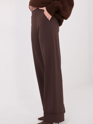 Στυλάτα και άνετα γυναικεία παντελόνια σε ευρεία γραμμή, ιδανικά για καθημερινή χρήση καθώς και για το γραφείο. Κατασκευασμένα από μείγμα ραφιών, ναυλον και ελαστάνης, είναι μαλακά, αεριζόμενα και ευέλικτα, προσφέροντας άνεση καθόλη τη διάρκεια της ημέρας. Το κυρίαρχο ομαλό σχέδιο τους προσδίδει καθολικό και διαχρονικό χαρακτήρα. Τα παντελόνια έχουν ψηλή μέση που επισημαίνει όμορφα τη μέση. Στο πίσω μέρος της μέσης έχει ραμμένο ελαστικό λάστιχο, που εξασφαλίζει τέλεια εφαρμογή και άνεση χωρίς την ανάγκη για κουμπί, το μοντέλο είναι εντελώς χωρίς κούμπωμα. Στο κάτω μέρος των ποδιών υπάρχει ευρύ γυριστό, προσθέτοντας μια μοντέρνα και χαλαρή αίσθηση. Οι φαρδιές ποδιές και η πιέτα προσδίδουν κομψό φινίρισμα στα παντελόνια, διατηρώντας παράλληλα τον καζίνο χαρακτήρα τους. Λειτουργικές πλαϊνές τσέπες αυξάνουν την πρακτικότητα του μοντέλου.