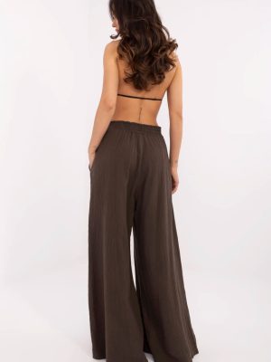 Ελαφρύ και στυλάτο γυναικείο παντελόνι από μουσελίνα είναι η ιδανική επιλογή για ζεστές μέρες. Κατασκευασμένο από αναπνεύσιμη βαμβακερή ύλη, εξασφαλίζει άνεση στην φθορά και φυσική ελευθερία κινήσεων. Η γραμμή palazzo με φαρδιά πόδια του προσδίδει κομψό αλλά και ταυτόχρονα casual χαρακτήρα, ιδανικό για καθημερινή χρήση. Η ελαστική ζώνη στη μέση προσφέρει άνετη εφαρμογή, τονίζοντας τη μέση και αυξάνοντας την άνεση χρήσης. Οι πλαϊνές τσέπες προσθέτουν πρακτικότητα, ενώ το λείο σχέδιο καθιστά το παντελόνι ευέλικτο και εύκολο στην στιλιστική προσαρμογή. Συνδυάζονται τέλεια τόσο με εφαρμοστό τοπ όσο και με πιο χαλαρό πουκάμισο, δημιουργώντας ελαφριές και μοντέρνες εμφανίσεις για διάφορες περιστάσεις.