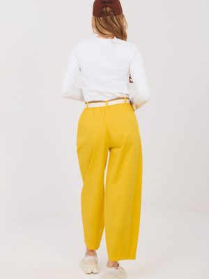 Άνετο και στιλάτο παντελόνι σε γραμμή καρότο, ιδανικό για καθημερινές, casual εμφανίσεις. Κατασκευασμένο από υψηλής ποιότητας βαμβάκι με προσθήκη ελαστάνης, που εξασφαλίζει άνεση και ελαφρότητα στην ένδυση, καθώς και διακριτική ελαστικότητα. Το παντελόνι έχει ψηλή μέση, οι ποδιές είναι στενές και φτάνουν στο μήκος 7/8, δίνοντάς του σύγχρονο χαρακτήρα. Στη μέση υπάρχει ραμμένο λάστιχο, και επιπλέον το παντελόνι είναι εξοπλισμένο με ζώνη που μπορεί να κλείσει, διευκολύνοντας τη ιδανική εφαρμογή. Οι πρακτικές πλαϊνές τσέπες αυξάνουν τη λειτουργικότητα, ενώ το λείος σχέδιο το κάνει εύκολο να συνδυαστεί με διάφορα στοιχεία της γκαρνταρόμπας. Αυτό το παντελόνι είναι μια εξαιρετική επιλογή για άτομα που εκτιμούν την άνεση, την ελευθερία κινήσεων και το σύγχρονο casual look.