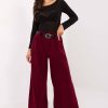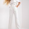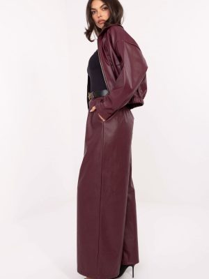 Σικ και άνετα παντελόνια τύπου palazzo κατασκευασμένα από υψηλής ποιότητας οικολογική δερματίνη (συνδυασμός πολυεστέρα και πολυουρεθάνης). Το μοντέλο με τις φαρδιές καμπάνες και τη ψηλή μέση τονίζει όμορφα τη μέση, ενώ ταυτόχρονα εξασφαλίζει ελευθερία κινήσεων. Στη μέση είναι ραμμένη μια ελαστική ζώνη, η οποία επιτρέπει στο παντελόνι να προσαρμόζεται τέλεια στη σιλουέτα. Επιπλέον, διαθέτει ζώνη με κούμπωμα που αναδεικνύει τη σιλουέτα και προσθέτει στην όλη εμφάνιση μια κομψή λεπτομέρεια. Το μοντέλο έχει πλαϊνές τσέπες και ομαλή επιφάνεια υλικού, που του δίνει έναν μοντέρνο, μινιμαλιστικό χαρακτήρα. Είναι η ιδανική πρόταση σε casual στυλ, που είναι κατάλληλη τόσο για καθημερινές εμφανίσεις όσο και για δουλειά, εξασφαλίζοντας άνεση και κομψή εμφάνιση καθ’ όλη τη διάρκεια της ημέρας.