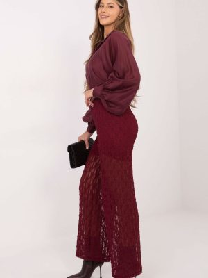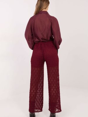 Οι κομψές γυναικείες παντελόνες τύπου wide leg με δαντέλα είναι μια στιλάτη πρόταση που ταιριάζει τέλεια τόσο για καθημερινή χρήση όσο και για επίσημες ή γιορτινές περιστάσεις. Το μοντέλο συνδυάζει την άνεση στην εφαρμογή με έναν εξαιρετικό, γυναικείο σχεδιασμό. Τα παντελόνια είναι κατασκευασμένα από μια σύνθεση βιζκόζης και ελαστάνης, γεγονός που παρέχει απαλότητα, ελαστικότητα και άνετη προσαρμογή στη σιλουέτα. Η ποικιλόμορφη υφή του υλικού προσδίδει συνολικά έναν κομψό χαρακτήρα και τονίζει το διακοσμητικό στυλ της δαντέλας. Η ψηλή μέση και η ελαστική ζώνη στη μέση τονίζουν όμορφα τη μέση και διασφαλίζουν άνεση καθ’ όλη τη διάρκεια της ημέρας. Οι φαρδιές ζώνες στο στυλ wide leg οπτικά επιμηκύνουν τα πόδια και προσδώσουν ελαφρότητα στη σιλουέτα. Το μοντέλο χωρίς κλείσιμο, που φοριέται μέσω των γοφών, είναι πρακτικό και άνετο στη χρήση. Η επένδυση στο ανώτερο μέρος παρέχει κατάλληλη κάλυψη και άνεση, χωρίς να αλλοιώνει την λεπτή εμφάνιση του υλικού. Είναι μια εξαιρετική επιλογή για γυναίκες που θέλουν να συνδυάσουν την κομψότητα με έναν μοντέρνο σχεδιασμό και άνεση.