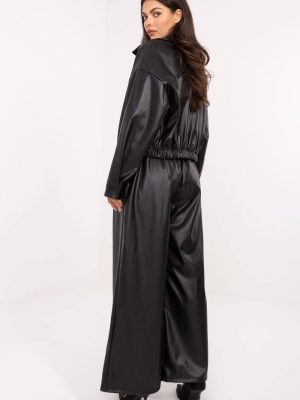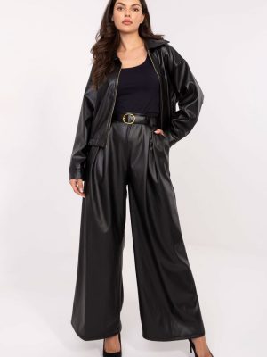 Στυλάτα και άνετα παντελόνια τύπου palazzo κατασκευασμένα από υψίστης ποιότητας οικολογικό δέρμα (συνδυασμός πολυεστέρα και πολυουρεθάνης). Το μοντέλο έχει φαρδιές μερίδες και ψηλή μέση που αναδεικνύει όμορφα τη μέση, ενώ ταυτόχρονα εξασφαλίζει ελευθερία κίνησης. Στη μέση έχει ραμμένη ελαστική ζώνη, γεγονός που καθιστά το παντελόνι να προσαρμόζεται τέλεια στη σιλουέτα. Επιπλέον διαθέτει ζώνη με κούμπωμα, που επιτρέπει να τονιστεί η φιγούρα και να προσθέσει μια κομψή πινελιά στο σύνολο. Το μοντέλο έχει πλαϊνές τσέπες και λεία επιφάνεια υλικού, προσδίδοντας του μοντέρνο, μινιμαλιστικό χαρακτήρα. Είναι η ιδανική πρόταση σε casual στυλ, που θα λειτουργήσει τόσο για τις καθημερινές όσο και για τη δουλειά, εξασφαλίζοντας άνεση και κομψή εμφάνιση καθ’ όλη τη διάρκεια της ημέρας.