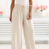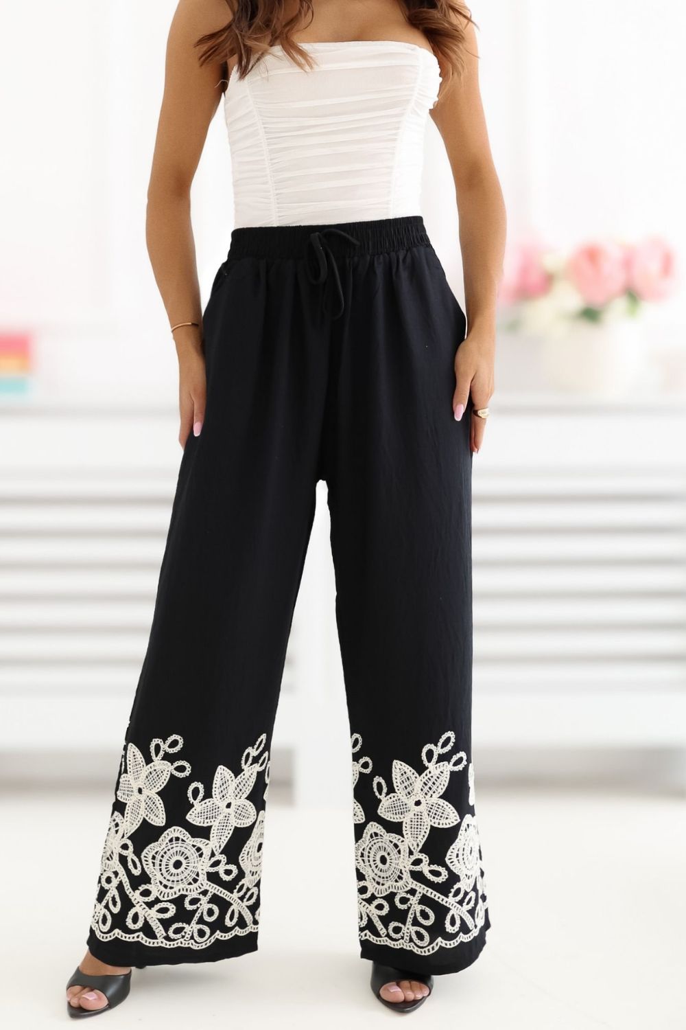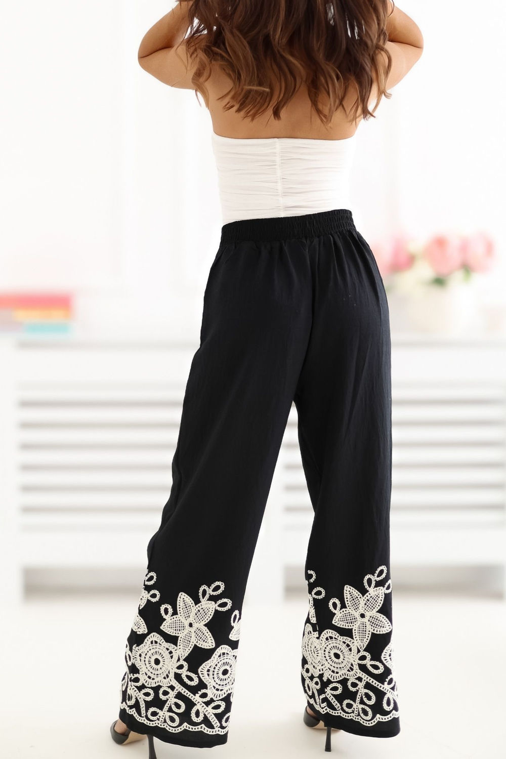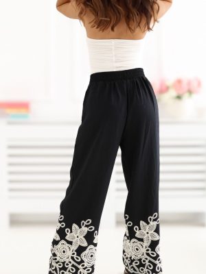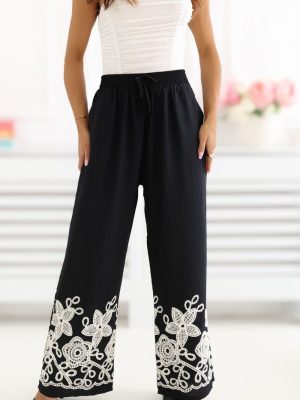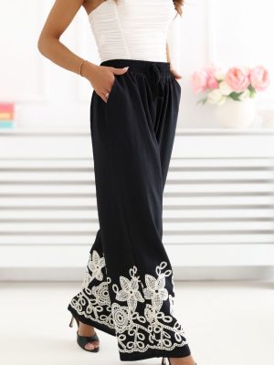 Τα γυναικεία παντελόνια τύπου wide leg είναι η ιδανική πρόταση για καθημερινές στιλιστικές επιλογές, συνδυάζοντας την άνεση με μια κομψή, γυναικεία εμφάνιση. Η χαλαρή γραμμή με τις φαρδιές, μακριές παντελόνες παρέχει ελευθερία κίνησης και εφαρμόζει απαλά στο σώμα, δημιουργώντας μια εντυπωσιακή, στυλάτη εμφάνιση. Το μοντέλο διακρίνεται για την διακοσμητική κεντημένη λεπτομέρεια στις παντελόνες, που προσθέτει πρωτοτυπία και διακριτή κομψότητα στο σύνολο. Η ψηλή μέση αναδεικνύει όμορφα τη μέση και η ζώνη στον αφαλό επιτρέπει την τέλεια εφαρμογή και αυξάνει την άνεση της χρήσης. Τα παντελόνια είναι κατασκευασμένα από διαπνέουσα, ευχάριστη στην αφής βισκόζη, γι’ αυτό και είναι ιδανικά για καθημερινή χρήση, ειδικά τις θερμότερες ημέρες. Οι πρακτικές, πλαϊνές τσέπες που εισέρχονται προσθέτουν λειτουργικότητα, χωρίς να διαταράσσουν την ελαφριά φύση του μοντέλου. Αυτό είναι μια εξαιρετική επιλογή για γυναίκες που εκτιμούν την άνεση, το στυλ και τις μοναδικές λεπτομέρειες στη ντουλάπα τους.