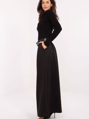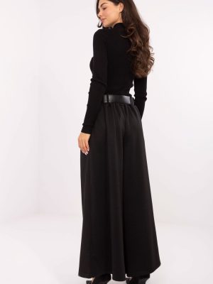 Κομψά γυναικεία παντελόνια τύπου palazzo, ιδανικά για καθημερινή χρήση και για την εργασία. Ραμμένα από μείγμα βισκόζης και πολυεστέρα, διακρίνονται για την ομαλή υφή τους και την άνεση που προσφέρουν. Η ψηλή μέση με ραμμένο λάστιχο και ζώνη που κλείνει τονίζει τη μέση, ενώ οι διακοσμητικές πτυχές προσθέτουν κομψότητα στο σύνολο. Οι φαρδιές παντελόνι προσδίδουν ελαφρότητα στη σιλουέτα, ενώ οι πρακτικές πλευρικές τσέπες που εισέρχονται εξασφαλίζουν λειτουργικότητα. Είναι μια στιλάτη πρόταση που συνδυάζει την κομψότητα με την άνεση.