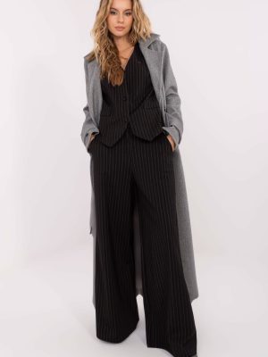 Στυλάτες γυναικείες παντελόνες τύπου wide leg palazzo είναι μια πρόταση που έχει δημιουργηθεί για τις γυναίκες που εκτιμούν το κομψό στυλ σε συνδυασμό με την άνεση. Ιδανικά θα λειτουργήσουν στην καθημερινότητα, στη δουλειά, αλλά και κατά τις επίσημες περιστάσεις, προσθέτοντας ελαφρότητα και κομψότητα στις εμφανίσεις. Το σχέδιο με ρίγες ανυψώνει διακριτικά τη σιλουέτα και υπογραμμίζει τον σύγχρονο χαρακτήρα του μοντέλου. Κατασκευασμένα από υψηλής ποιότητας μείγμα ναυλον, βισκόζης, πολυεστέρα και ελαστάνης, τα παντελόνια είναι ελαφριά, ελαστικά και ευχάριστα στο φόρεμα. Η υψηλή μέση τονίζει όμορφα τη μέση, ενώ οι φαρδιές γάμπες τύπου palazzo προσδίδουν σε όλο το σύνολο μια κομψή, χαλαρή αίσθηση. Το μοντέλο διαθέτει κλείσιμο με φερμουάρ και κουμπιά, που παρέχουν σταθερή και άνετη εφαρμογή. Οι πλευρικές τσέπες προσθέτουν λειτουργικότητα, διατηρώντας ταυτόχρονα τον κομψό εμφάνιση. Αυτά τα παντελόνια είναι μια σύνθεση στυλ, άνεσης και διαχρονικού σχεδιασμού, ιδανικά για την κατασκευή στυλάτων, γυναικείων συνόλων για διάφορες περιστάσεις.