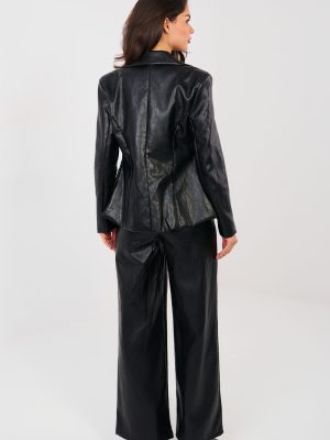 Μοντέρνα γυναικεία παντελόνια από οικολογικό δέρμα σε στυλ wide leg είναι μια κομψή και ευέλικτη πρόταση για καθημερινές εμφανίσεις και για τη δουλειά. Κατασκευασμένα από υφάσματα υψηλής ποιότητας που αποτελούν συνδυασμό βισκόζης και πολυουρεθάνης, συνδυάζουν εντυπωσιακή εμφάνιση με άνεση κατά τη διάρκεια της χρήσης. Το μοντέλο με ομαλό σχέδιο και ψηλή μέση αναδεικνύει όμορφα τη μέση και οπτικά επιμηκύνει τη σιλουέτα. Οι φαρδιές μπατζάκια προσδίδουν στο παντελόνι σύγχρονο, άνετο χαρακτήρα και εξασφαλίζουν άνεση κατά τη διάρκεια της χρήσης. Οι πρακτικές πλαϊνές τσέπες αυξάνουν τη λειτουργικότητα του μοντέλου. Το παντελόνι κλείνει με φερμουάρ και κουμπί, διασφαλίζοντας καλή εφαρμογή και σταθερότητα. Ιδανικό για συνδυασμούς τόσο με κομψό μπλουζάκι και σακάκι, όσο και με casual πουλόβερ ή τοπ.