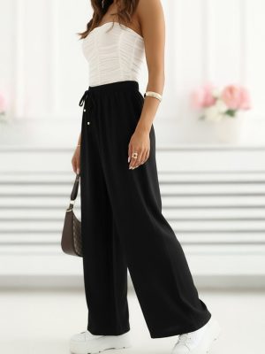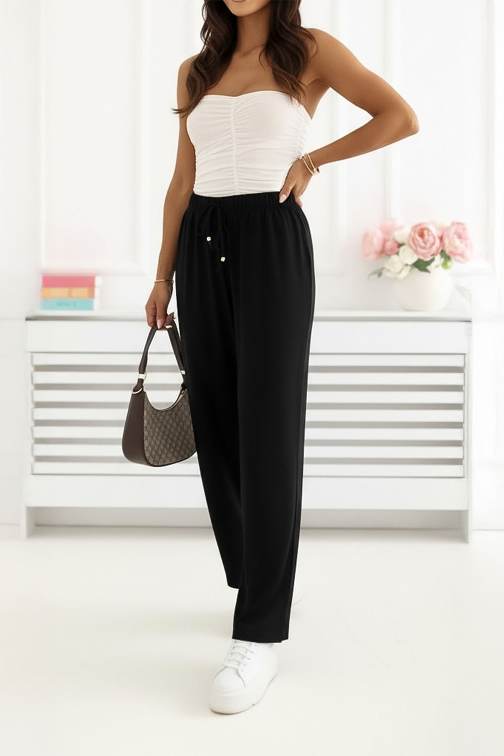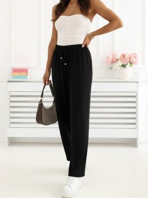 Οι γυναικείες παντελόνες τύπου wide leg είναι μια άνετη και στυλάτη πρόταση για καθημερινή χρήση. Το μοντέλο με τις φαρδιές, μακριές γάμπες εφαρμόζει όμορφα στο σώμα, εξασφαλίζοντας ελευθερία κινήσεων και μια μοντέρνα, ελαφρώς ατημέλητη εμφάνιση. Το απλό σχέδιο καθιστά το παντελόνι εξαιρετικά ευέλικτο και εύκολο στην στυλιζάρισμα, συνδυάζεται υπέροχα τόσο με casual όσο και με πιο θηλυκά κομμάτια της γκαρνταρόμπας. Η υψηλή μέση τονίζει τη μέση, ενώ η ζώνη στη μέση επιτρέπει ατομική προσαρμογή και αυξάνει την άνεση κατά την διάρκεια της χρήσης. Φτιαγμένα από ένα μείγμα βισκόζης και πολυαμίδης, τα παντελόνια είναι ελαφριά, ευχάριστα στην αφή και κάθονται καλά στο σώμα. Η έλλειψη τσεπών υπογραμμίζει τον μινιμαλιστικό χαρακτήρα τους, προσδίδοντας στην όλη εμφάνιση μια κομψή φινίρισμα. Είναι η ιδανική επιλογή για γυναίκες που εκτιμούν την άνεση, την απλότητα και το διαχρονικό στυλ σε καθημερινές στυλιστικές επιλογές. Σημειώσεις: Το μέγεθος στην ετικέτα είναι M/L, αλλά το μοντέλο είναι πιο μικρό και αντιστοιχεί στο μέγεθος S/M (κατώτερο).