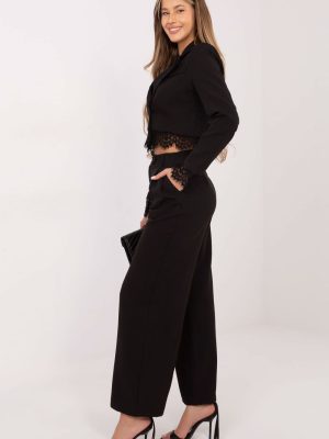 Τα κομψά γυναικεία παντελόνια τύπου palazzo είναι μια εξαιρετική επιλογή για καθημερινή χρήση, για τη δουλειά καθώς και για πιο επίσημες περιστάσεις. Κατασκευασμένα από υψηλής ποιότητας πολυεστέρα με προσθήκη ελαστάνης, εξασφαλίζουν άνεση κατά τη διάρκεια της χρήσης, ανθεκτικότητα και μια λεπτή ελαστικότητα, που επιτρέπει ελευθερία κινήσεων. Το λείο ύφασμα τους προσδίδει κλασικό και διαχρονικό χαρακτήρα. Το μοντέλο με ψηλή μέση αναδεικνύει όμορφα τη μέση και οπτικά μακραίνει τη σιλουέτα, ενώ οι μακριές, φαρδιές γραμμές προσθέτουν ελαφρότητα και κομψότητα στην εμφάνιση. Τα παντελόνια κλείνουν με φερμουάρ και κουμπιά, εξασφαλίζοντας καλή εφαρμογή. Οι πρακτικές, πλευρικές τσέπες αυξάνουν τη λειτουργικότητα και την άνεση χρήσης. Ταιριάζουν ιδανικά τόσο με πουκάμισο και σακάκι όσο και με πιο casual μπλούζα.