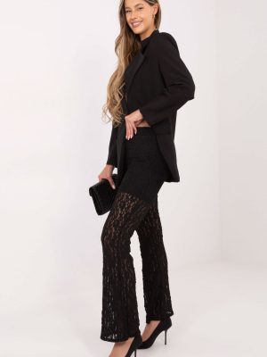 Τα κομψά γυναικεία κορόνα παντελόνια είναι ένα μοναδικό μοντέλο που συνδυάζει στυλ και άνεση. Κατασκευασμένα από μείγμα βισκόζης και ελαστάνης, ξεχωρίζουν για την ποικιλόμορφη υφή του υλικού, που τους προσδίδει μια διακριτικά διακοσμητική διάθεση. Ο απλός κομψός σχεδιασμός τύπου straight leg και η μακριά μπάσκα δημιουργούν μια διαχρονική, αδύνατη σιλουέτα. Στη μέση είναι ραμμένο ένα ελαστικό λάστιχο που διασφαλίζει άνετη εφαρμογή, ενώ η απουσία κλεισίματος και τσεπών τονίζει τον μινιμαλιστικό, κομψό στυλ. Το παντελόνι διαθέτει φόδρα στο πάνω μέρος, η οποία αυξάνει την άνεση του φορέματος και εξασφαλίζει την ιδανική εφαρμογή του υλικού. Αυτό το μοντέλο είναι ιδανικό για καθημερινές περιστάσεις, καθώς και για επίσημες εξόδους ή εκδηλώσεις, προσθέτοντας στιλ και εκλέπτυνση στην εμφάνιση.
