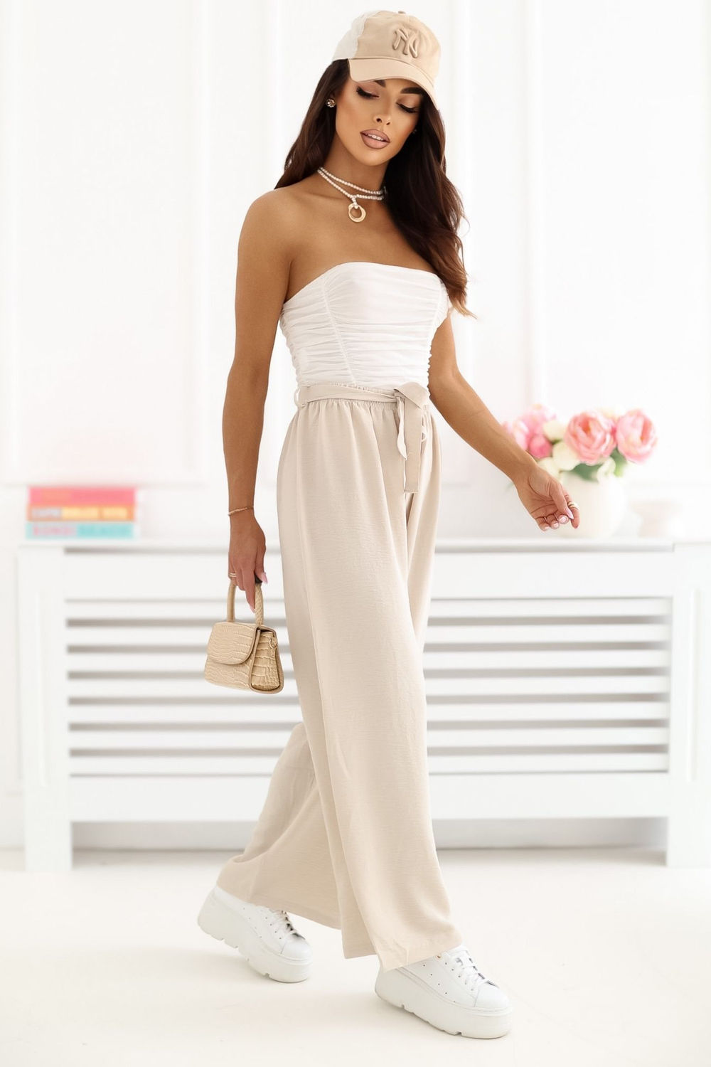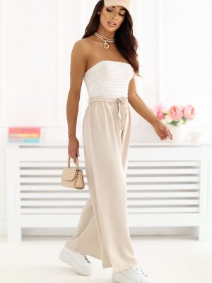 Τα γυναικεία παντελόνια τύπου wide leg είναι μια στυλάτη και άνετη επιλογή για καθημερινή χρήση. Το μοντέλο με φαρδιές μπατζάκια μήκους 7/8 προσφέρει ελαφρότητα και μοντέρνα εμφάνιση στη σιλουέτα, ιδανικό για καθημερινές στυλιστικές προτάσεις. Το απλό σχέδιο υπογραμμίζει την ευχρηστία του παντελονιού, επιτρέποντας εύκολους συνδυασμούς με διάφορα στοιχεία της γκαρνταρόμπας, από απλά τοπ μέχρι κομψά πουκάμισα. Η ψηλή μέση αναδεικνύει υπέροχα τη μέση, ενώ η ζώνη στη μέση και η πρόσθετη ζώνη για δέσιμο επιτρέπουν την τέλεια εφαρμογή και προσθέτουν γυναικεία γοητεία στο σύνολο. Τα παντελόνια είναι φτιαγμένα από μια ευχάριστη στην αφή μίξη βισκόζης και ελαστάνης, προσφέροντας άνεση, ευελιξία και ωραία εφαρμογή στη σιλουέτα. Η έλλειψη τσεπών τονίζει τον μινιμαλιστικό και κομψό χαρακτήρα του μοντέλου. Είναι μια εξαιρετική επιλογή για γυναίκες που εκτιμούν τον συνδυασμό άνεσης με τη μοντέρνα, διαχρονική στυλ.