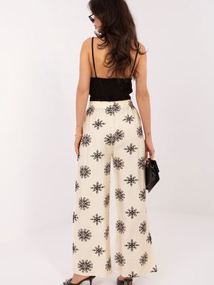Τα γυναικεία παντελόνια τύπου palazzo είναι μια άνετη και κομψή πρόταση για καθημερινή χρήση, ιδανική για γυναίκες που εκτιμούν την ελευθερία και την στυλιστική εμφάνιση. Οι φαρδιές, μακριές παντελόνες προσθέτουν ελαφρότητα και κομψότητα στη σιλουέτα, εξασφαλίζοντας ταυτόχρονα μέγιστη άνεση κατά τη διάρκεια της χρήσης. Το μοντέλο είναι κατασκευασμένο από συνδυασμό βισκόζης και νάιλον, γεγονός που καθιστά το υλικό ευχάριστο στην αφή, αεριζόμενο και ανθεκτικό. Η κυρίαρχη εκτύπωση προσθέτει ένταση στα παντελόνια και τα καθιστά ενδιαφέρον στοιχείο κάθε στυλ. Στη μέση έχει προστεθεί ελαστική ζώνη και επιπλέον κορδόνια, δίνοντας τη δυνατότητα τέλειας προσαρμογής στη σιλουέτα και αυξάνοντας την άνεση κατά τη χρήση. Είναι μια εξαιρετική επιλογή για καθημερινές εμφανίσεις, τόσο σε casual όσο και σε πιο θηλυκό στυλ.